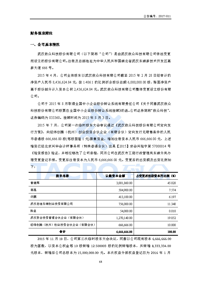 致众科技:2016年年度报告(更正后)